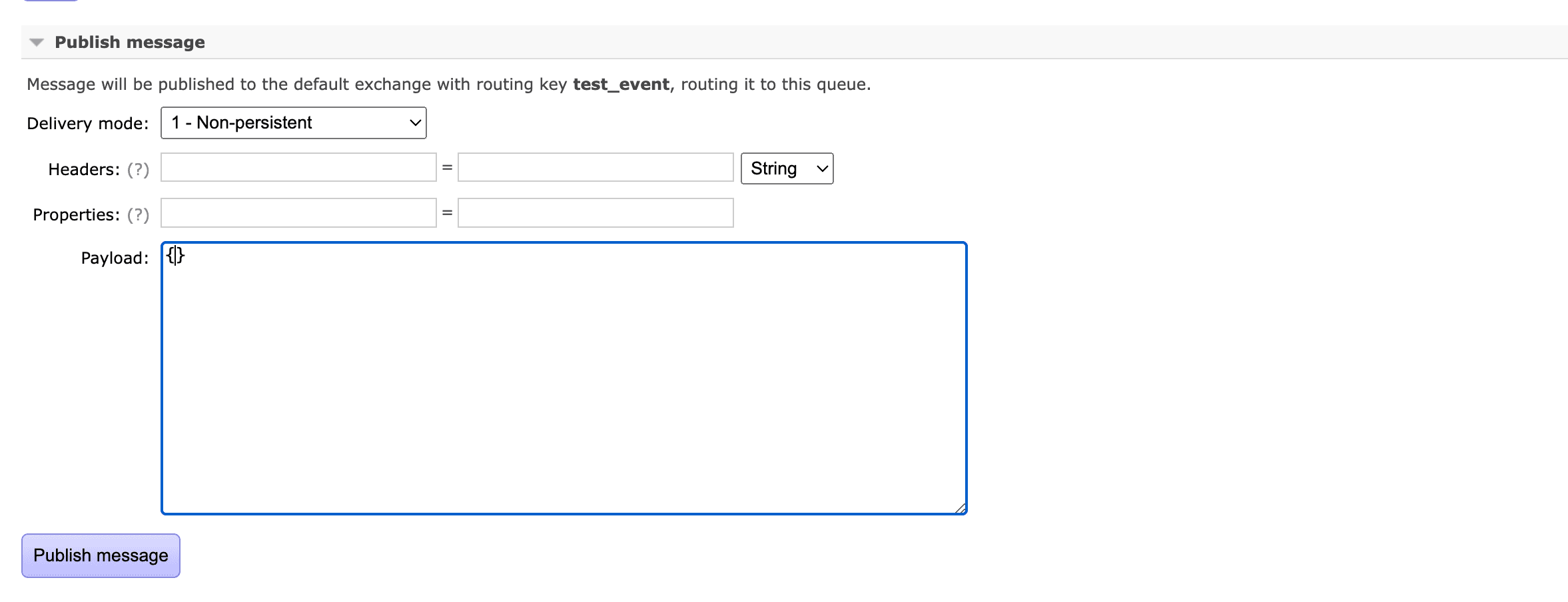 First of all, let's save the payload from the last message somewhere, it will be used when we publish the message by hand to test the consumer.